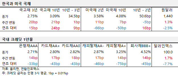 국내 시장은 국고채 금리가 연중 최고치를 경신하며 큰 약세를 보이고 있어요.