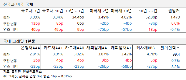 금통위에서 기준금리가 동결되고, 경제전망 및 물가전망이 상향 조정되는 등 매파적인 발언들 영향이에요. 원달러가 1470원을 돌파하는 등 원화 가치 하락으로 원화 표시 자산들의 약세가 지속되고 있어요.